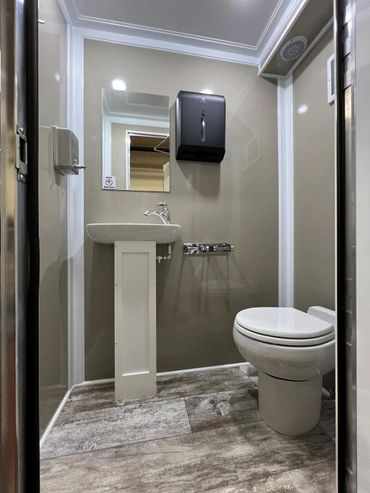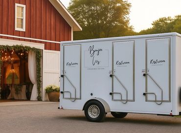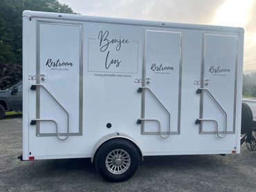 Our Boujee Loo portable restroom trailer comes equipped with all the comforts of home, elevating your event to the next level! Put your guests at ease in our luxurious restroom trailer with 4 individual stalls, climate control, hot and cold water, and interior/exterior LED lighting.
